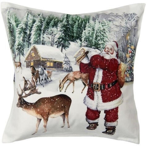 Clayre & Eef Textil Párnahuzat 45X45cm, Polyester, Télapó Állatokkal - fizz