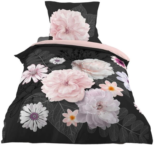 Fekete-rózsaszín egyszemélyes pamut ágyneműhuzat 140x200 cm Floral – douceur d'intérieur