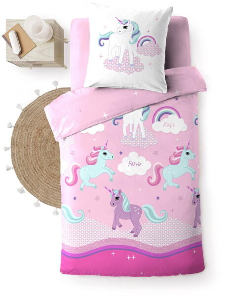 Rózsaszín egyszemélyes pamut gyerek ágyneműhuzat 140x200 cm Licorne – douceur d'intérieur