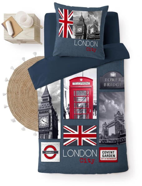 Sötétkék egyszemélyes pamut ágyneműhuzat 140x200 cm City London – douceur d'intérieur