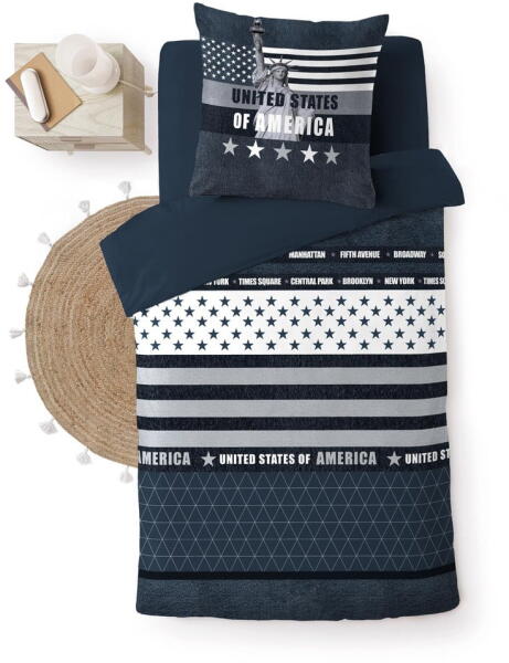 Sötétkék egyszemélyes pamut ágyneműhuzat 140x200 cm States – douceur d'intérieur