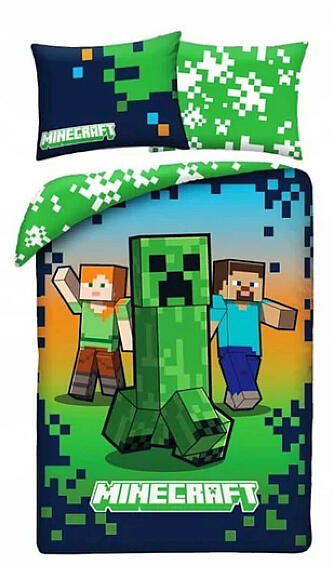 A gamerek részére tervezett ágyneműn kedvenc Minecraft csapatod látható. Az ágyneműhuzat mindkét oldala mintás.