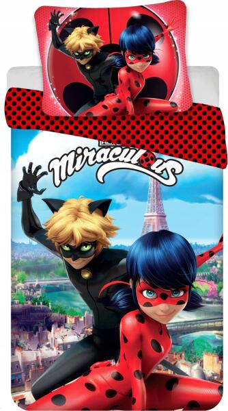 Jerry Fabrics Pamut ágynemű 140x200 katica és a fekete macska katica Miraculous piros (21BS095)ALLEGRO