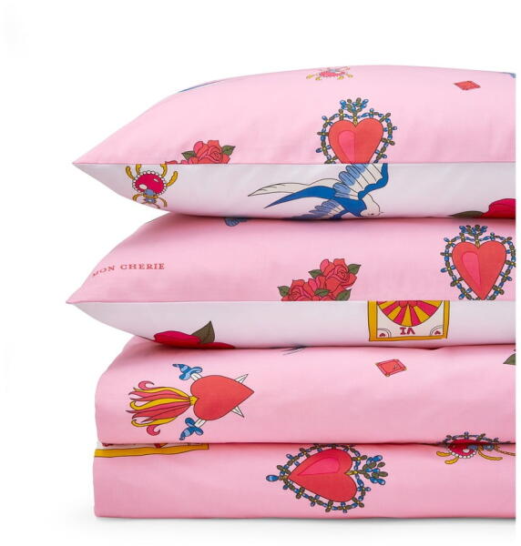 Fehér-rózsaszín kétszemélyes-hosszabbított pamut ágyneműhuzat 230x220 cm Mon Coeur – Their Nibs