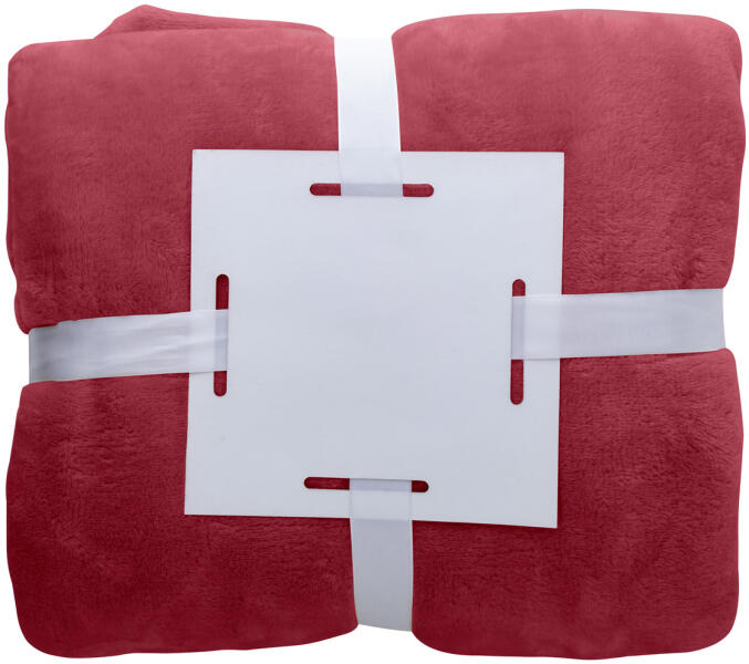 Flanel takaró, 280 g/m2 Szalaggal átkötve, nyomtatható papírkártyával szállítjuk.