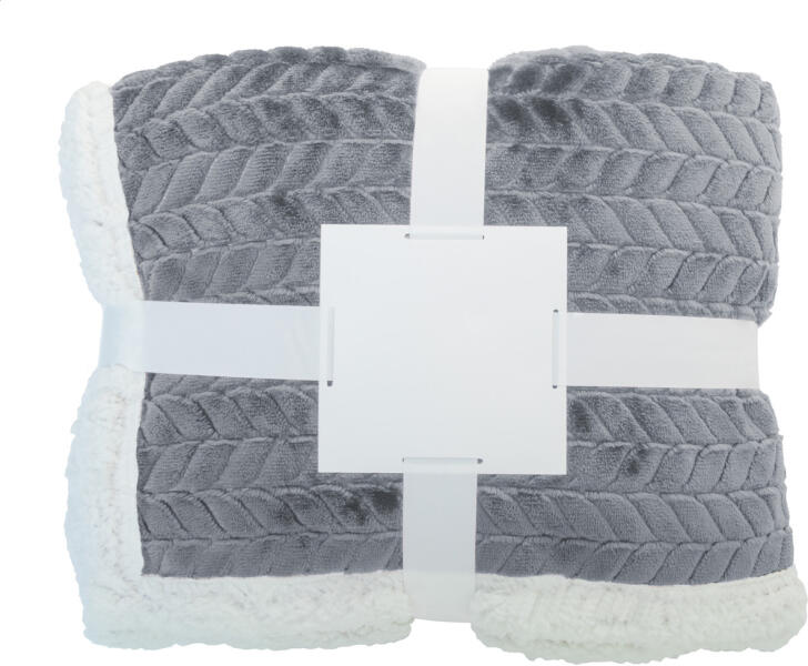 Kétrétegű RPET takaró jacquard mintázattal. 240 g/m2 RPET flanel gyapjúval és kifordítható 210 g/m2 RPET sherpagyapjú béléssel. Szalaggal és emblémázható papírkártyával körbetekerve szállítjuk.