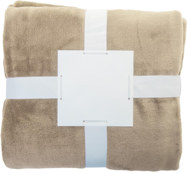 RPET flanel gyapjú takaró, 260 g/m2. Szalaggal átkötve, emblémázható papírkártyával szállítjuk.